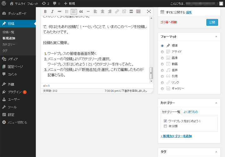 ワードプレスをはじめよう!というカテゴリーを作ってみた。