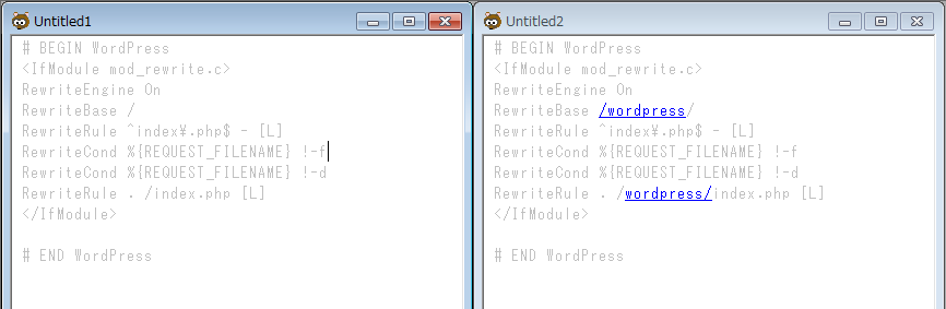 ちゃうちゃうで.htaccessを比較