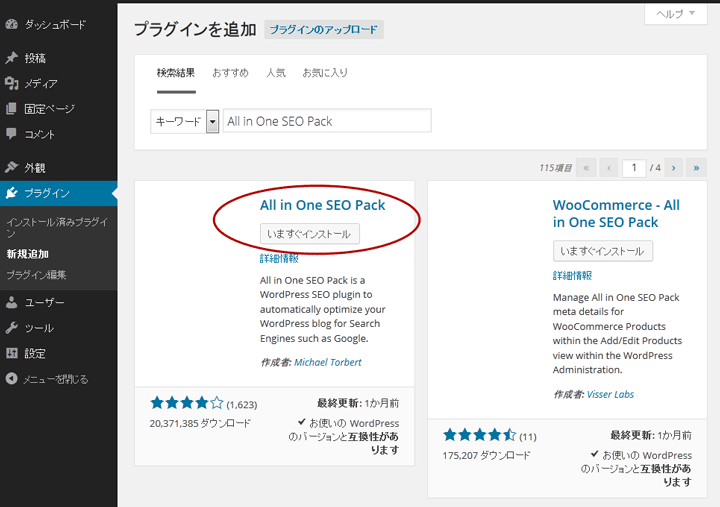 ということになるが、そうはいっても、これだけはやっておけというのがあるはずなので、それができるプラグインを探したところ、「All in One SEO Pack」というのが見つかった。