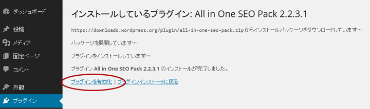 5. インストールが完了したら、プラグインを有効化