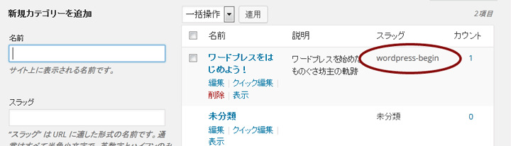 カテゴリのスラッグ